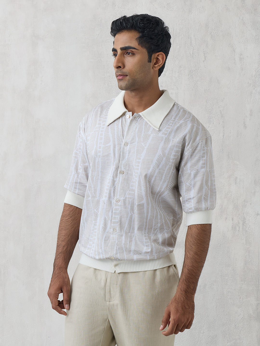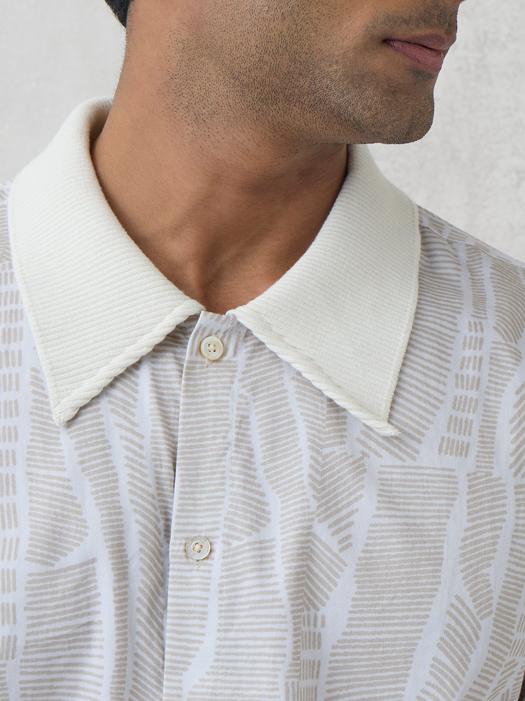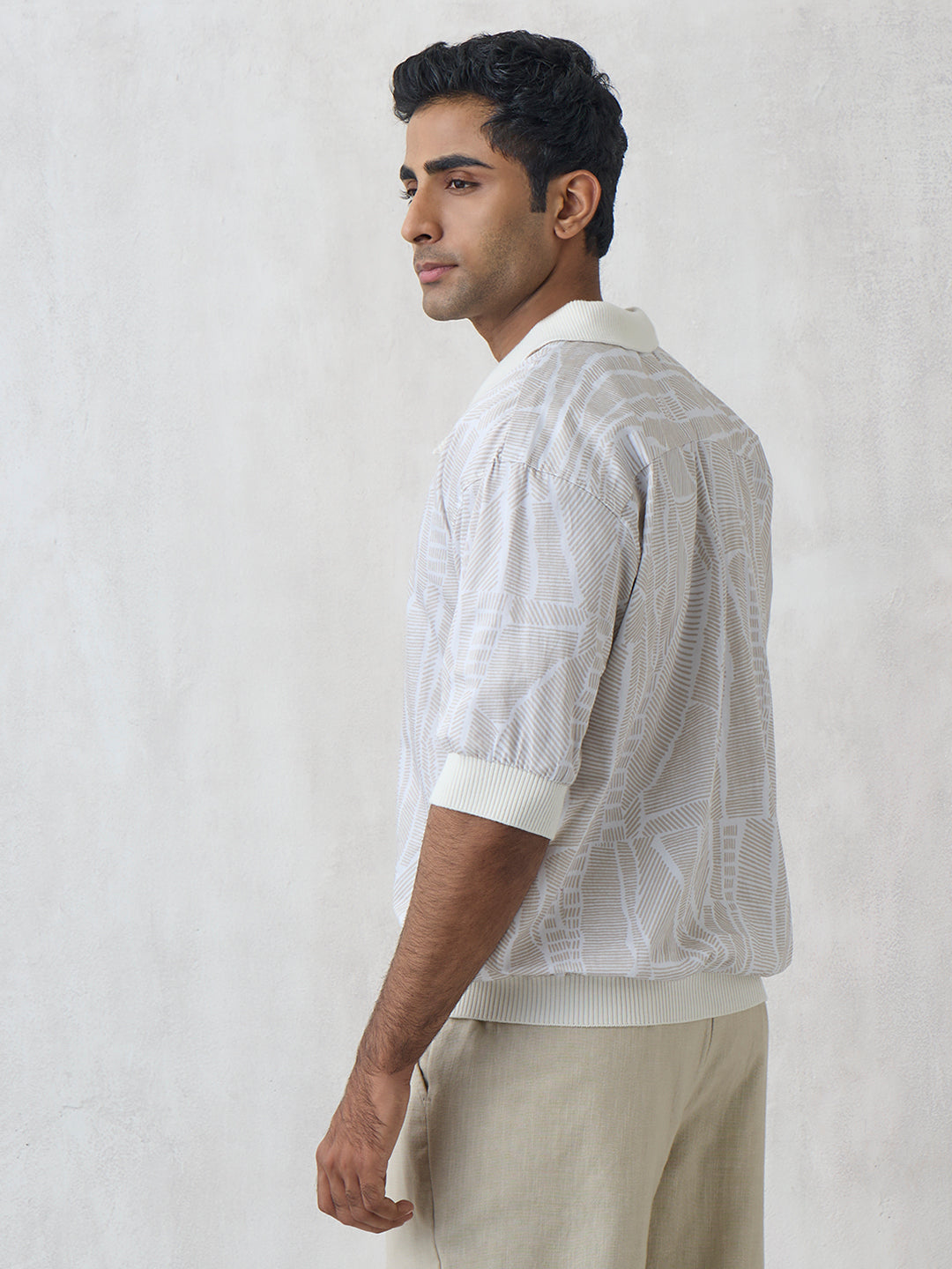 Add understated charm to your festive wardrobe with this beige polo tee. Defined by its woven texture, the design is elevated with contrast buttons that lend a refined accent to the classic silhouette. Short sleeves keep it easy and versatile, while the airy fabric ensures comfort through daytime celebrations.