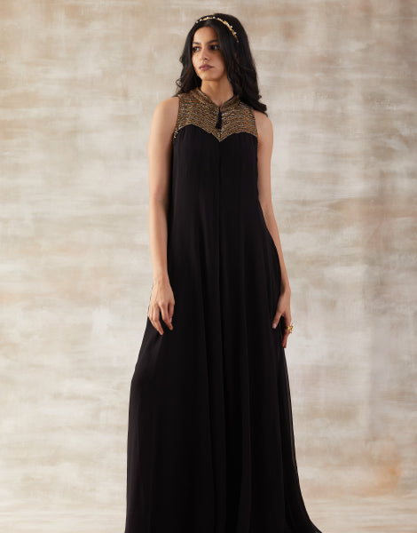 Immerse yourself in the world of grace and sophistication with this black jumpsuit that makes an exquisite style statement. The hand embroidery ensures a luxurious finish, while the breezy, wide-legged style with pockets adds to its appeal. Style yours with chunky jewellery and block heels.