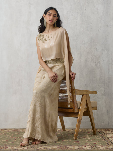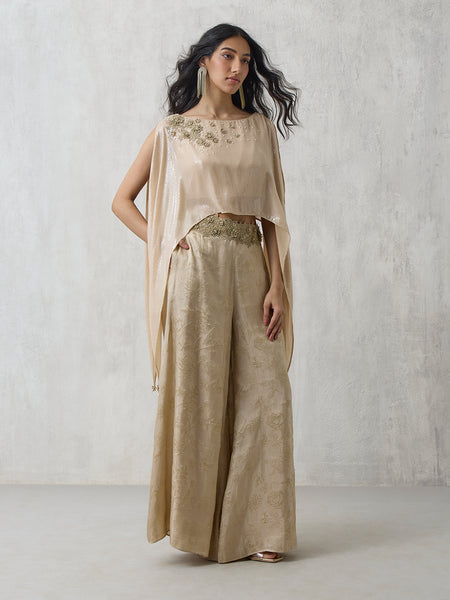 Embroidered Top And Jaquard Co-ord Set - Gold