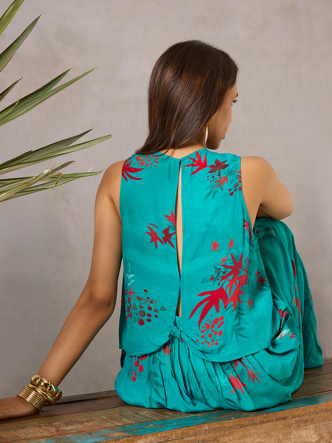 A sleeveless printed top with a clean round neckline and an easy, relaxed fit. The keyhole opening at the back adds a subtle touch of detail while keeping the silhouette light and airy. Style it with linen trousers, shorts, or a flowy skirt for an effortless summer look.