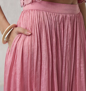 Fortify your ethnic capsule with a chic design like this pink skirt. Carved from a soft crepe fabric, this breezy creation comes finished with a slit pocket at the side for easy use. Style this maxi ethnic skirt with a matching top for a chic ethnic ensemble.