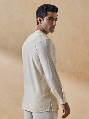 Celebrate in style with this panel-detailed kurta, where traditional detailing meets contemporary tailoring. Pintucks at the yoke add subtle texture, while patch pockets blend function with design.