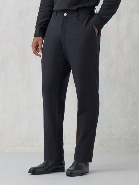 Crafted for versatile festive wear, these navy trousers from Samoh feature a straight-leg cut with pleats for structure. Finished with a contrast button, they blend everyday comfort with sharp tailoring, perfect for celebratory evenings.