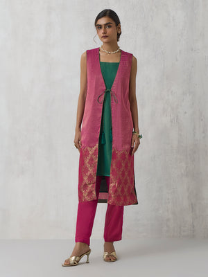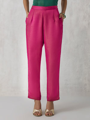 For days when a kurta calls for a touch of shine, these pink pants are the answer. Tailored from a lustrous fabric with a straight-leg cut, they feature soft pleats at the waist and a relaxed fit that makes them as comfortable as they are versatile. Pair them with festive kurtas or statement tops to bring effortless colour and polish to any celebration.