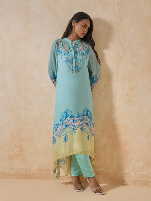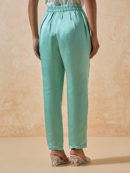 Rooted in tradition yet styled for today, these aqua blue ethnic pants bring sleek refinement to festive and everyday wardrobes alike. Tailored in a lustrous fabric, they offer just the right touch of occasion-ready shine, while the high waistband ensures a polished finish.